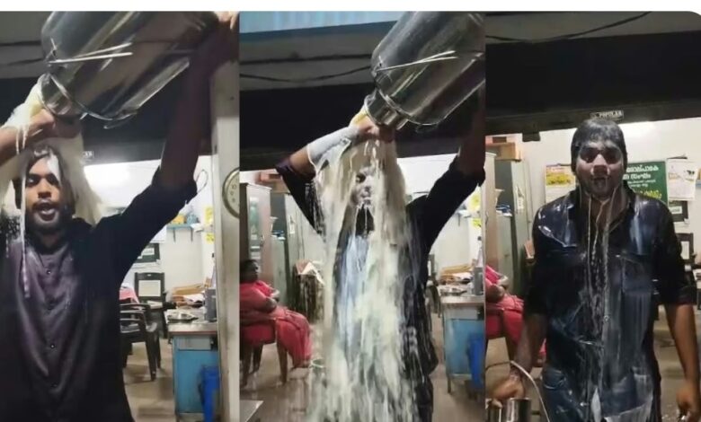 എന്റെ പശുവിന്റെ പാല് മാത്രം പിരിഞ്ഞുപോകുന്നെന്ന് പറഞ്ഞ് ദ്രോഹിക്കുന്നു’; തലയിലൂടെ പാല് ഒഴിച്ച് പ്രതീഷേദ്ധിച്ച് യുവാവ്