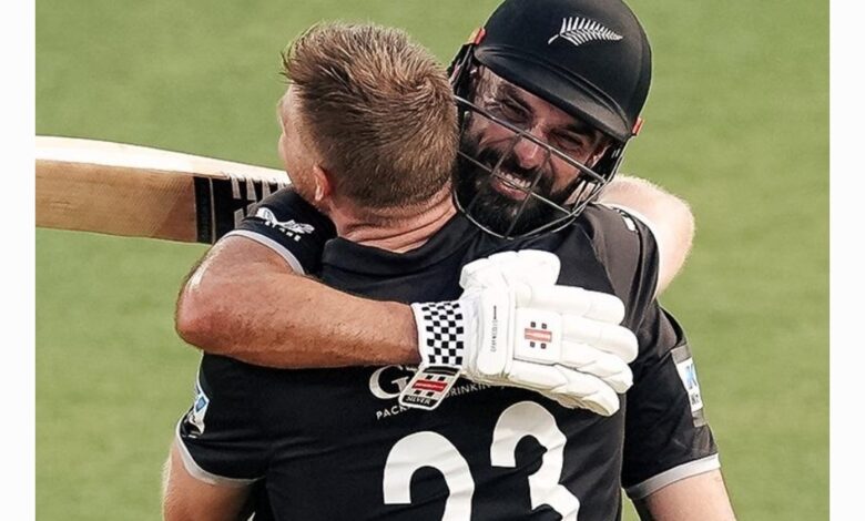 ഡാരൽ മിച്ചലും ഗ്ലെൻ ഫിലിപ്സും. Photo: BlackCaps/x.com