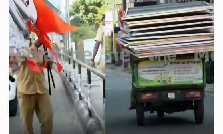 ഹൈക്കോടതി ഉത്തരവ് പാലിച്ച് കൊച്ചി കോര്പറേഷന്; ബിജെപിയുടെ മുഴുവന് ഫ്ലക്സുകളും കൊടികളും നീക്കം ചെയ്തു